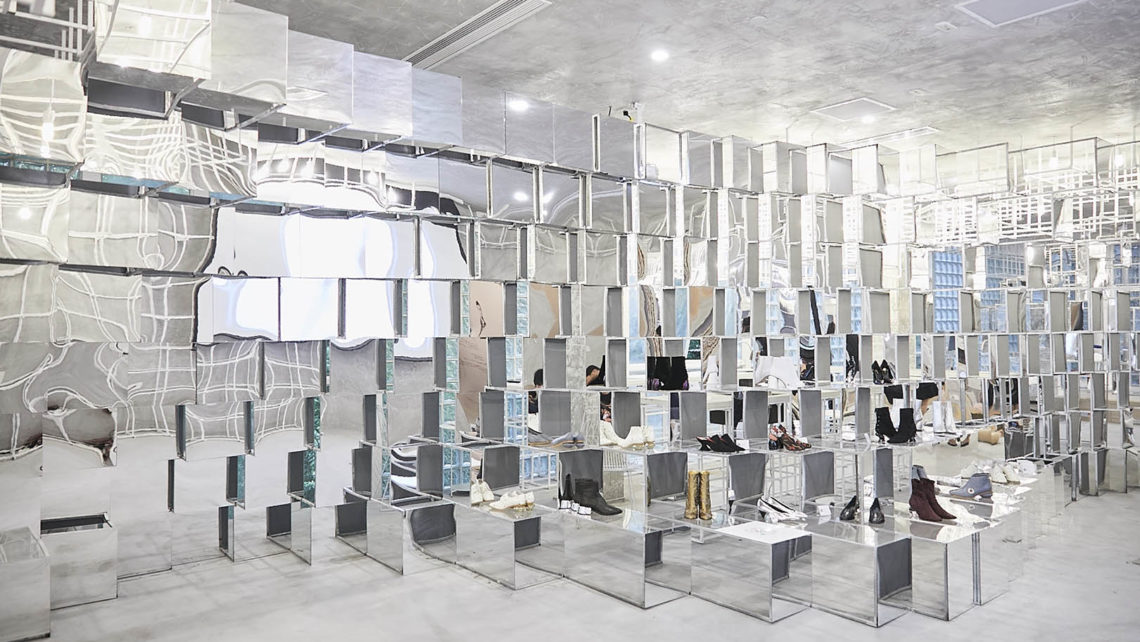 Pop Up Footwear Store and ExhibitionLook At PixelsTIME: 2017 SCALE: 3 x 12 x 3M LOCATION: Shanghai STATUS: Completed TEAM: Xing Xiong, Tianyuan Sun The two-dimensional screen, composed by a matrix of pixels, represents the